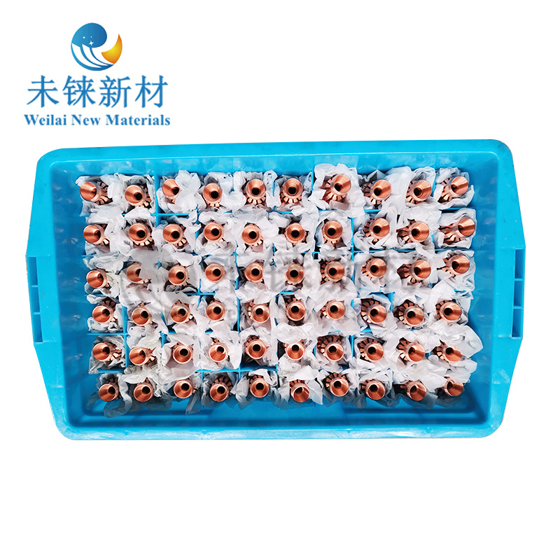 在等離子噴涂過程中,金屬或陶瓷粉末在等離子弧中被熔化,然后以高速噴射到需要涂覆的工件上。通過這種方式,可以在工具和各種設(shè)備組件上沉積不透水、附著力強的涂層。當(dāng)用于噴涂槍時,我們的電極必須能夠承受超過12,000°C的瞬時等離子溫度。這種瞬時高溫和高壓力對于我們的F4電極來說不是問題。我司采用背鑄生產(chǎn)工藝使得鎢和銅之間形成無縫連接,富有極高的強度。因此,我們的電極可以提供長時間的穩(wěn)定工作條件,延長使用壽命。